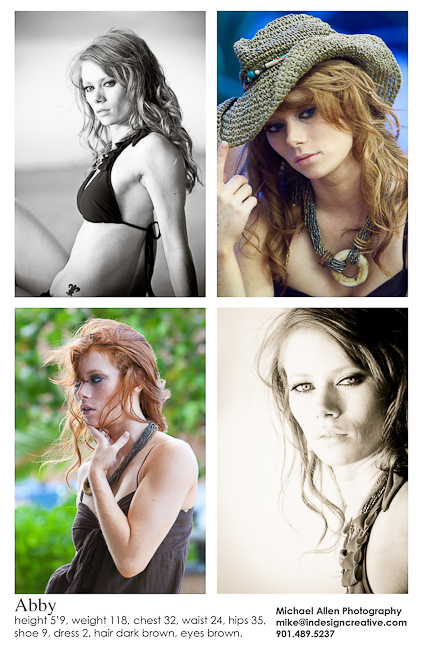 Michael Allen Photography offers several packages for actor/model/business/musicians headshot portraits. Having current, fresh headshots is very important for anyones portfolio, we offer both studio and lifestyle sessions depending on the look you are trying to show to clients. We also offer full design cover art services for music cd's, beautiful full color comp cards, and websites featuring video plugins. {This model is Anna Knight, I created an HD model film profile for her portfolio. She was a model for a shoot I did with The Buckle, a national clothing store, here is one of the images from The Buckle shoot in 2009. Anna now is in LA and has modeling roles in projects involving Jamie Foxx, Michael Jackson and others.}