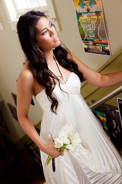 I also shot a behind the scenes HD documentary with help from my second photographer, Tracy Welch. We shot on the Canon 5d HDDSLR system, using cinematography techniques to create the compelling film, which starts off on scenes with one of our beautiful models on the beach holding a "message in a bottle" as she looks out to sea to find her lost lover. Be sure to watch the short film on our fashion reel page. For this photo, Tracy had the vision to shoot the model on the ladder in the Modica market, later on we found out that this is a Seaside tradition for brides that get married in Seaside {Photos by Michael Allen Photography}