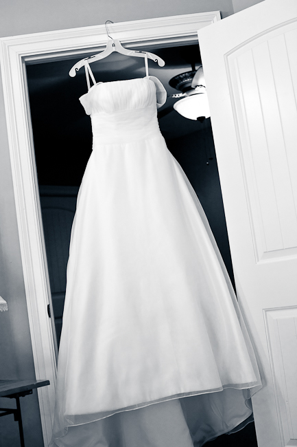 Here's a classic photograph of the brides dress hanging in the bridal suite. We love to capture intimate details like this on the wedding day. Beautiful, classic, romantic.